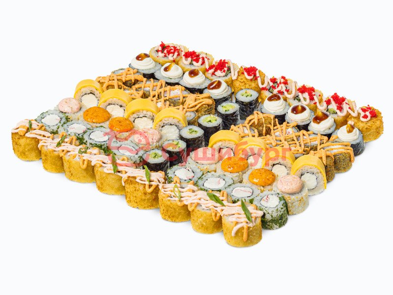 70 шт / Жареный Кайсо ролл, жареный Фудзияма, жареный Чиккен ролл, жареный Краб, запечённый Бангкок с пикантным соусом, Чиз ролл, ролл Фудзи,Тайбей ролл, ролл с огурцом.