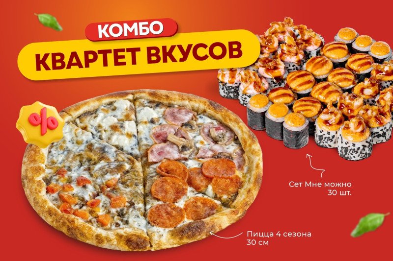 Пицца 4 сезона 30 см, Сет Мне можно (30шт).